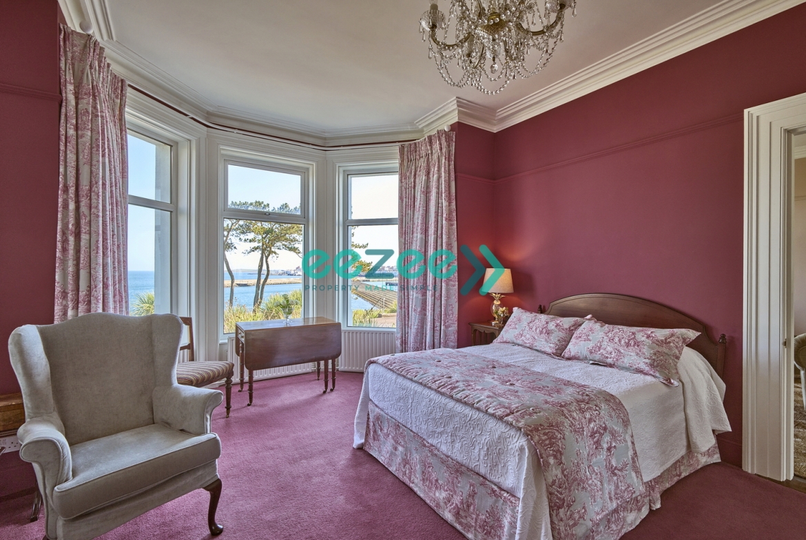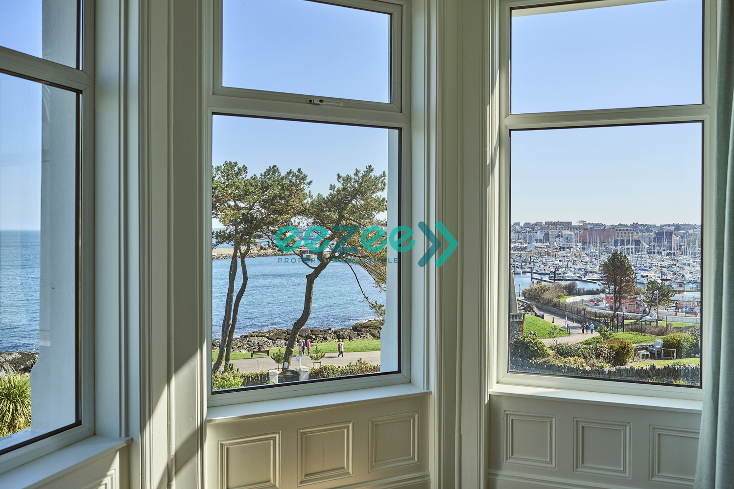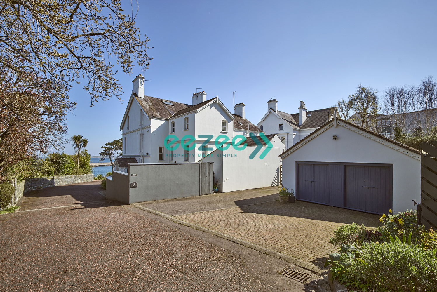 The interior of the villa is finished to an excellent standard, featuring historical plaster cornicing, handcrafted ceiling roses, and bevelled French glass doors. The two grand front-facing reception rooms offer stunning marina views, while the luxury fitted kitchen with dining area provides the perfect space for everyday living. Outside, the property benefits from a large garage, tarmac driveway with ample parking, private lawn gardens, two sunny courtyards, and an entertainment area overlooking the sea.