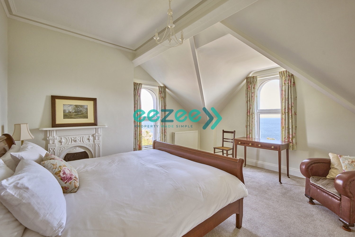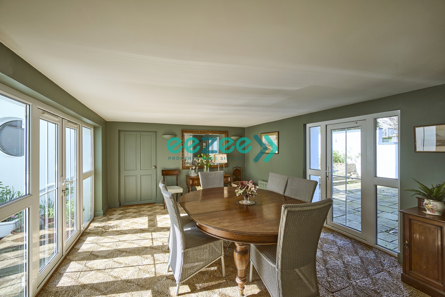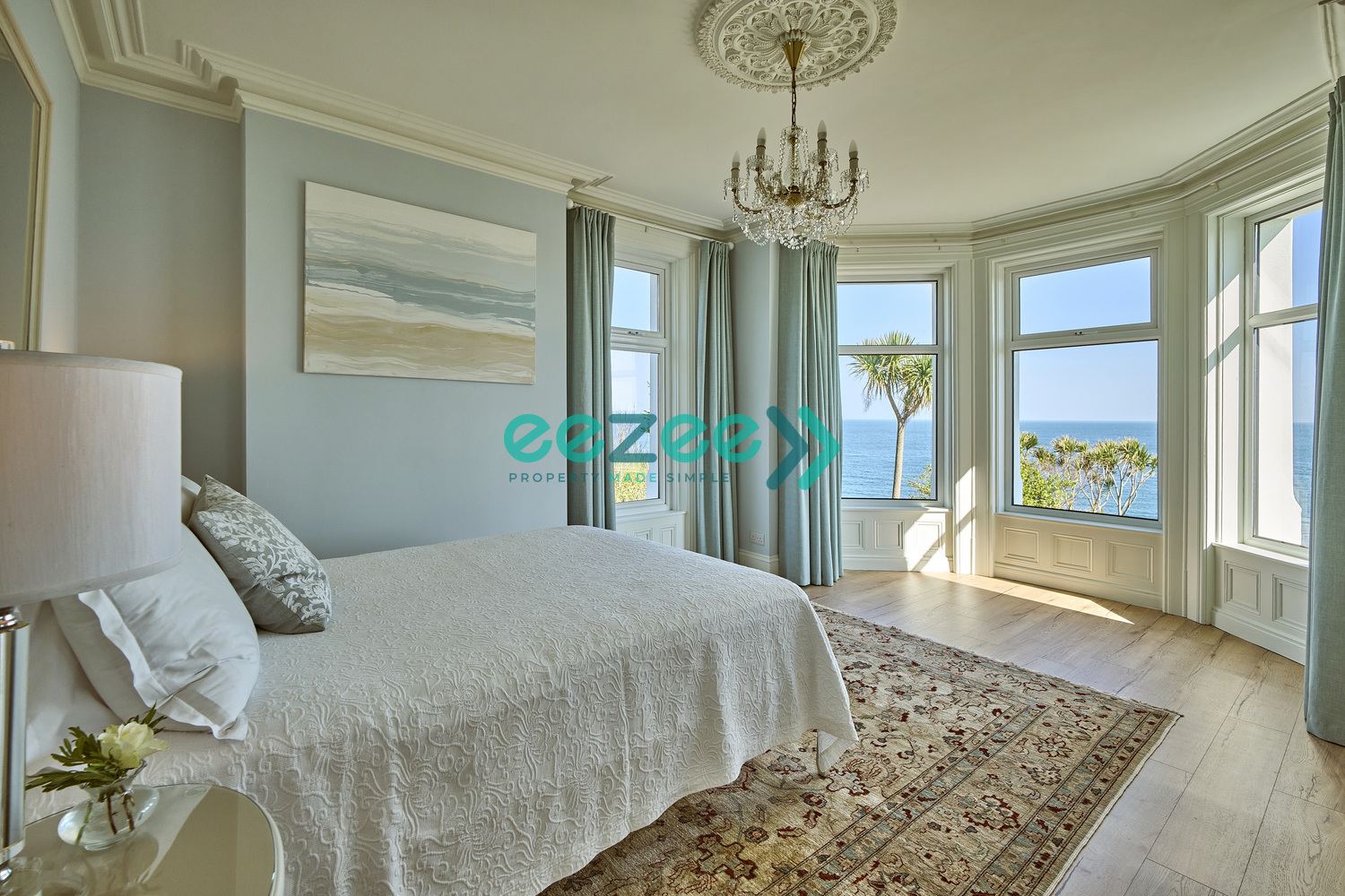The interior of the villa is finished to an excellent standard, featuring historical plaster cornicing, handcrafted ceiling roses, and bevelled French glass doors. The two grand front-facing reception rooms offer stunning marina views, while the luxury fitted kitchen with dining area provides the perfect space for everyday living. Outside, the property benefits from a large garage, tarmac driveway with ample parking, private lawn gardens, two sunny courtyards, and an entertainment area overlooking the sea.