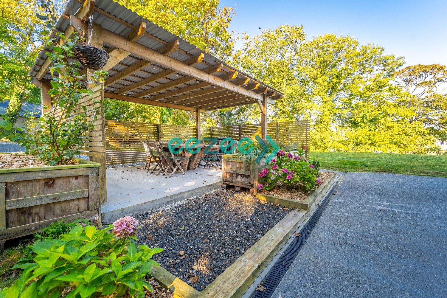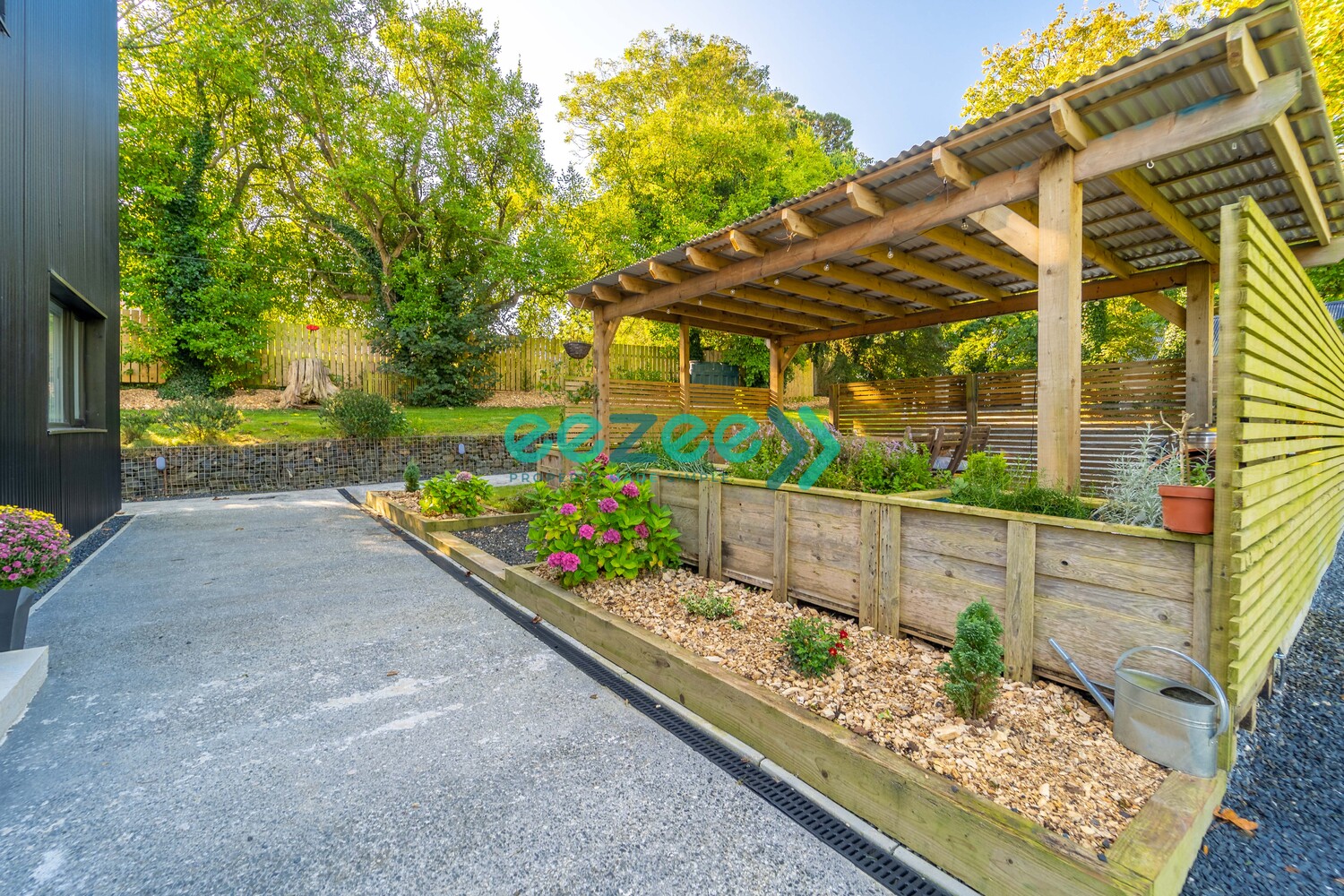 As well as manicured Flower Beds with Shrubs and Grasses, this Property has a large range of Trees placed around the Boundary and at the rear, a covered Decking Area providing the perfect location to entertain, BBQ or simply to put your feet up, relax and enjoy the stunning Sea Views that this magnificent Property has on offer.